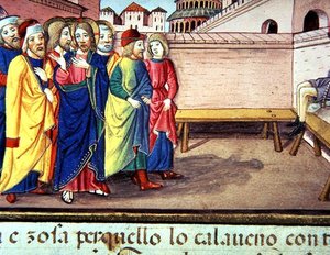 Christ meets a woman and says 'you are cured'(Fol.86v Christ meets a woman and says 'you are cured' (vellum))Italian School |