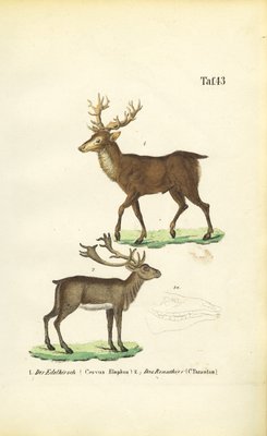 19th century · germany · europe · deer · animal · colour · natural history · zoology · lithograph · print · mzengraving · zoological plate · · Private Collection / Bridgeman Images
