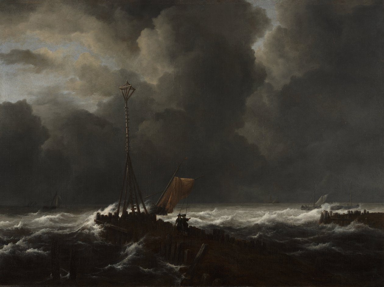 dark · ocean · gloomy · cloudy · scared · waves · storm · boat · sailing · water · ocean · rough · jetty