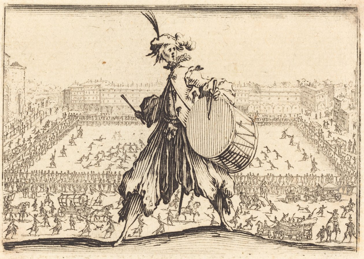 italy · italian · people · male · square · music · tuscany · arts · country · french · france · musician · costume · drum · drummer · crowded · florence · dress · baroque · piazza · location · century · musical instrument · musical instruments · florentine · 17th century · black white · black and white · seventeenth century · etching · jacques callot · iacopo callott · baroque era · callot · jacques · callote · jacques · callotti · jacques · heritage art · print · piazza santa croce · Heritage Art/Heritage Images