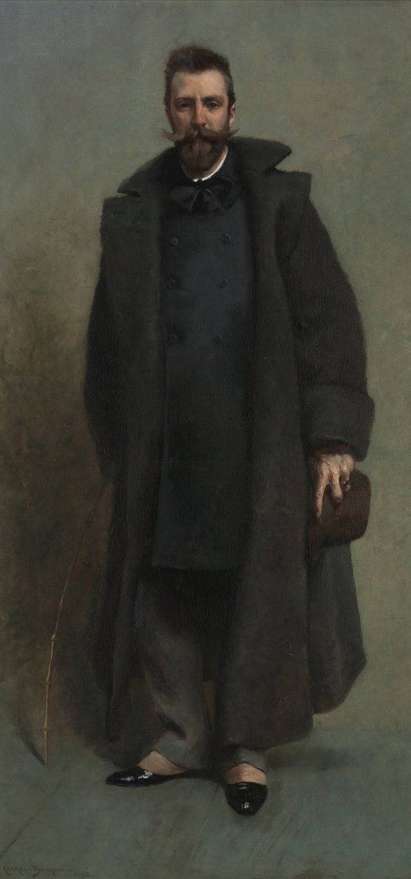 black · unphased · coat · shoes · mustache · brown · dull · grey · silent · somber · unphased · portrait · william · merritt · chase