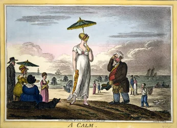 A Calm A Squall Progress of Gallantry or Stolen Kisses Sweetest Lady in Her Summer Dress Morning Dress at the Seaside from the Returning from the Review Loyal Ducking, June 1800 A Squall Woman Waiting for a Stage Coach Bathing Place, from Treaty of Versailles A Nincompoop, or Hen Peck Dropsy Courting Consumption Le Goût du Jour ou Des Chinois du Boulevard Coblentz A Ladies So this is what Morning Promenade upon the Cliff, Brighton Fashion engraving by Horace Vernet (1789 - 1863) made around 1810 for the number 25 of a The Gust of Wind A Spanking Dog Day & Real Melter in the Country, engraved by George Hunt, published by Thomas McLean, London, 1827 Le Coup de Vent Dropsy Courting Consumption Admiring the Beauties of Nature - Plaine St. Denis The Invisibles in Tête-à-Tête Tête-à-Tête with Poke Bonnets A Couple of Humbugs The Soldiers Return, or Rare News for Old England, published by Hannah Humphrey in 1791 A Bill of Fare for Bond Street Epicures!! Woman Reading on a Quay, Sailing Ships in the Background