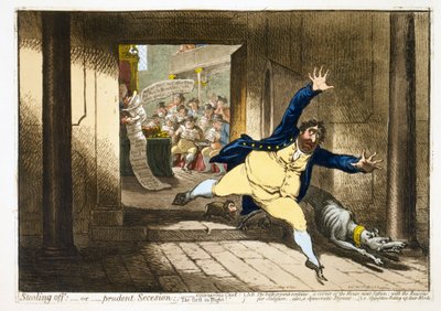 Stealing Off, or Prudent Secession(Stealing Off, or Prudent Secesion, published by Hannah Humphrey in 1798 (hand-coloured etching with aquatint))James Gillray |