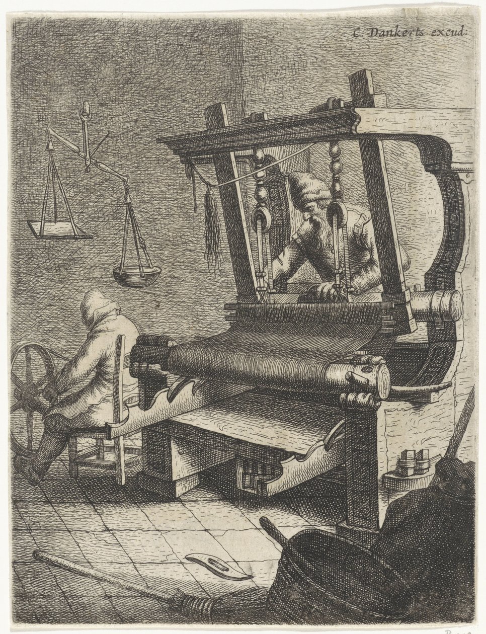 Weaver(Wever Beroepen (series title))Jan Gillisz. van Vliet(print maker),Cornelis Danckerts(publisher) |