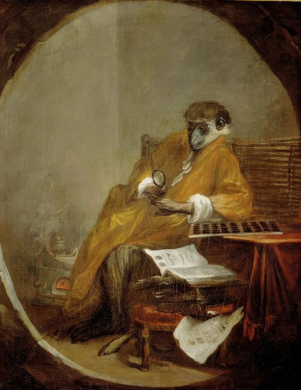 The Antiquarian Monkey(Le singe antiquaire)Jean-Baptiste Simeon Chardin |