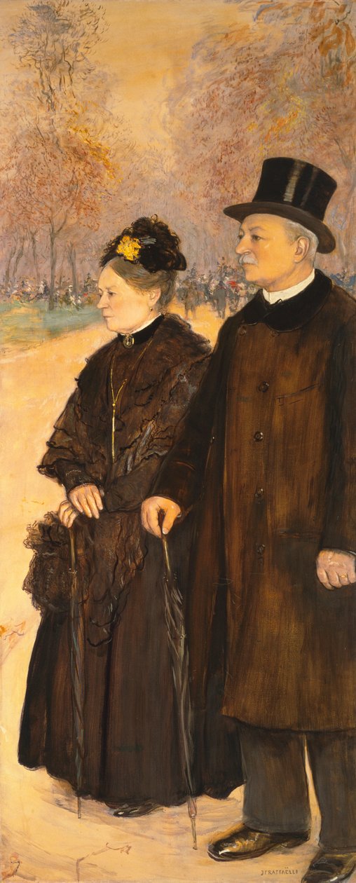 female · black · elderly · walking · aging · top hat · couple · male · Private Collection / Bridgeman Images |