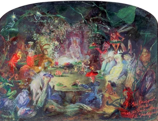 nature · food · fantasy · sitting · night · british · celebrations · color · colour · fairy · celebration · table · victorian · century · britain · furniture · concept · mythology · time of day · group of people · banquet · feast · 19th century · mythical creature · nineteenth century · art media · banqueting · mythical beast · john anster fitzgerald · john austen fitzgerald · fitzgerald · john anster · fitzgerald · john austen · Art Media/Heritage Images