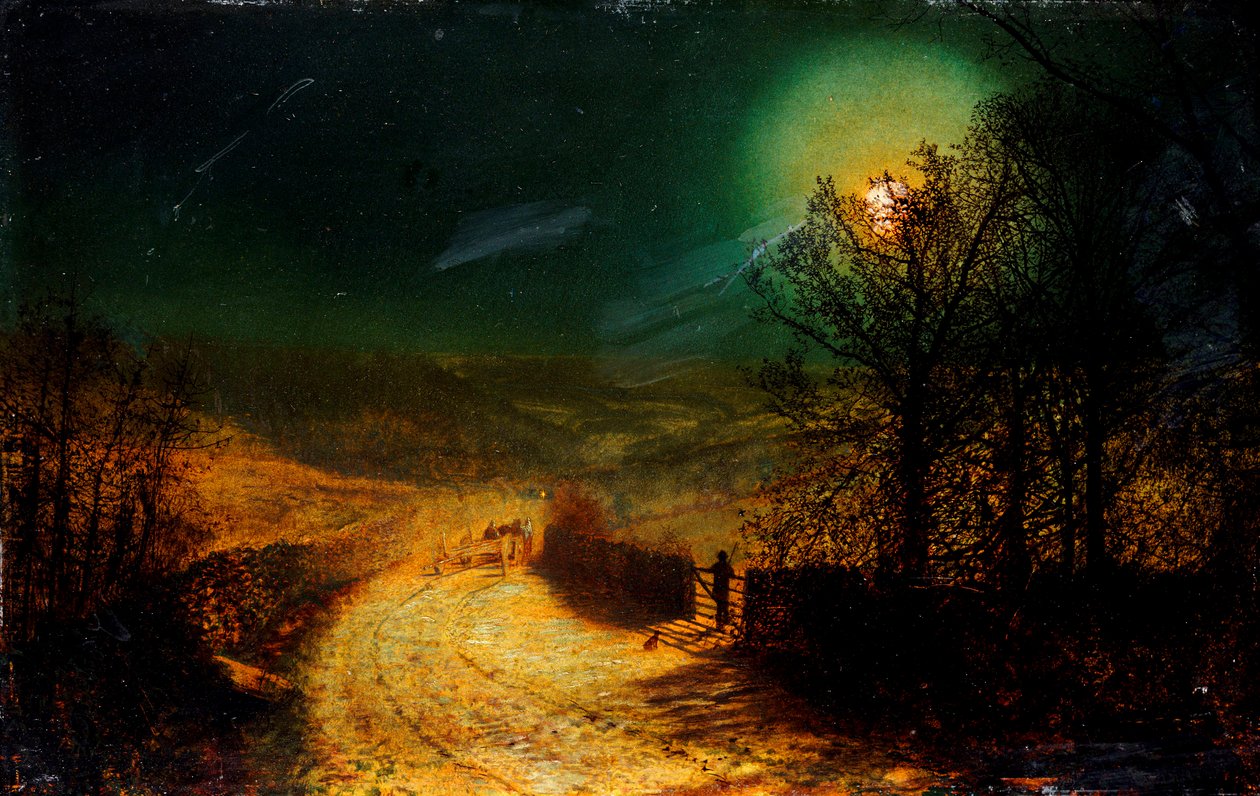 atmospheric · country · cart · moonlight · landscape · moon · rural · lane · moonlit · road · north yorkshire · english · nocturne · Private Collection / Bridgeman Images |