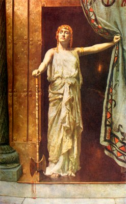standing · female · classic myth and legend · ar hope moncrieff · ar hope · women · woman · people · arts · painting · doorway · pride · proud · white · book · blood · crime · tools · tool · museum · color · golden · gold · darkness · victorian · century · murder · literature · concept · legend · myth · mythology · one person · slaughter · vengeance · oil painting · colour · 19th century · legendary · greek mythology · 1910s · 20th century · nineteenth century · artistic school · bloodstained · cassandra · classicism · murdering · oil on canvas · pre-raphaelite · slaughtering · portrait · white colour · gold colour · john collier · moncrieff · clytemnestra · artistic style · collier · john · pre-raphaelite brotherhood · guildhall art gallery · john maler collier · collier · john maler · hon john collier · the honourable john maler collier · gresham publishing company · gresham publishing co ltd · The Print Collector/Heritage Images