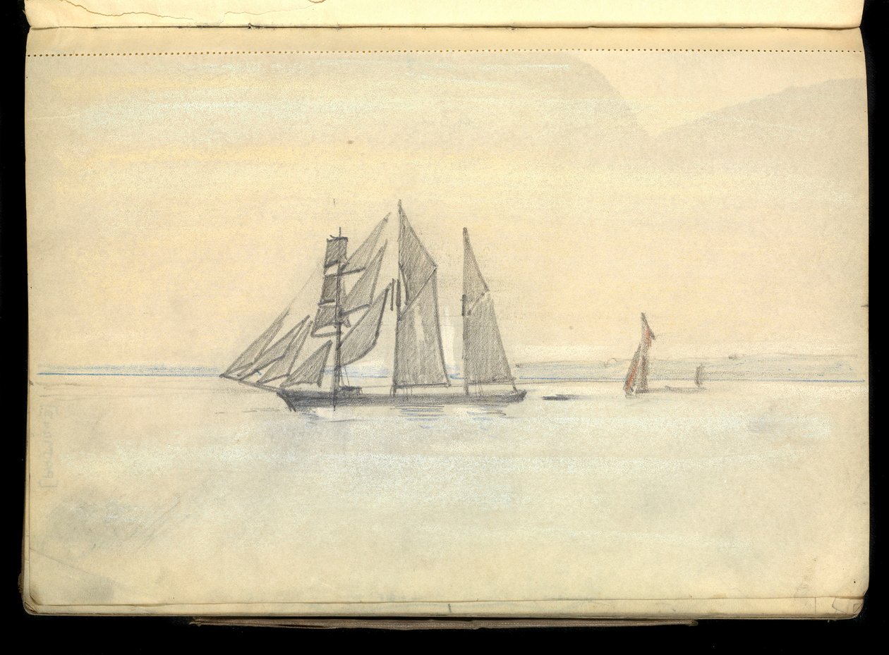 1900s · 20th century · colour · drawing · water · united kingdom · europe · nature · ship · ocean · nobody · transport · sailing boat · boat · outside · pastel · mzdrawing · seascape · · National Maritime Museum, London, UK / Bridgeman Images |