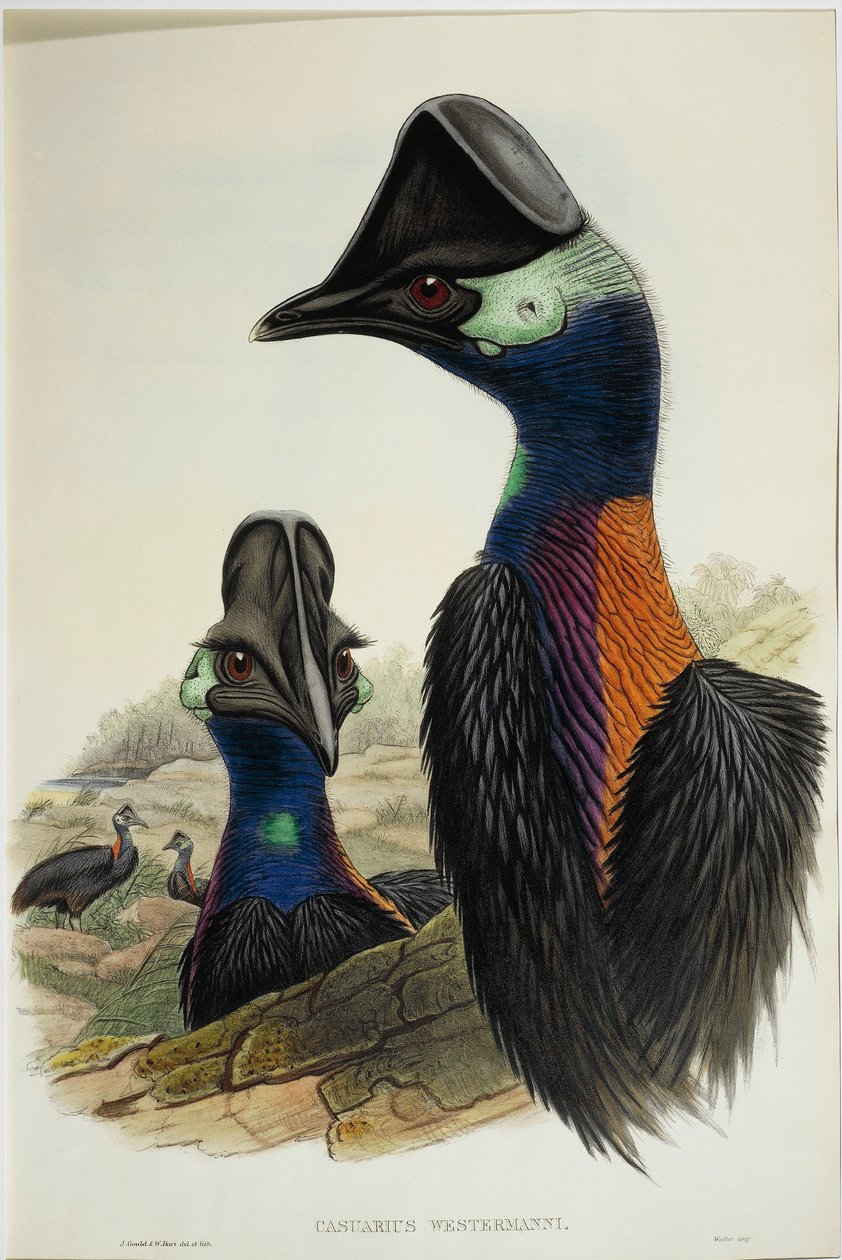 Dwarf Cassowary Casuarius bennetti, engravingJohn Gould |