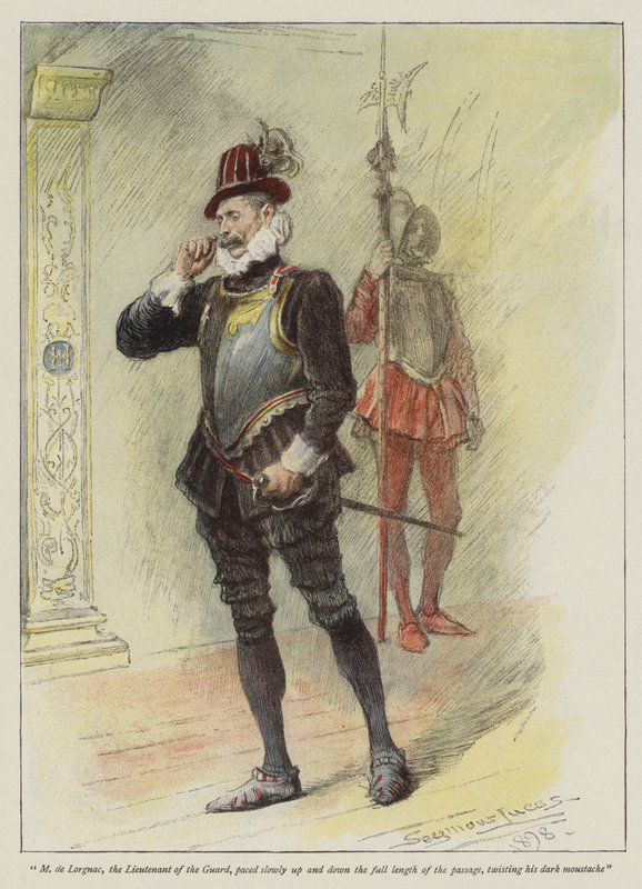 the heart of denise · s levett yeats · lorgnac · lieutenant · guard · paced · passage · twisting · dark · moustache · Private Collection / Bridgeman Images · / Look and Learn |