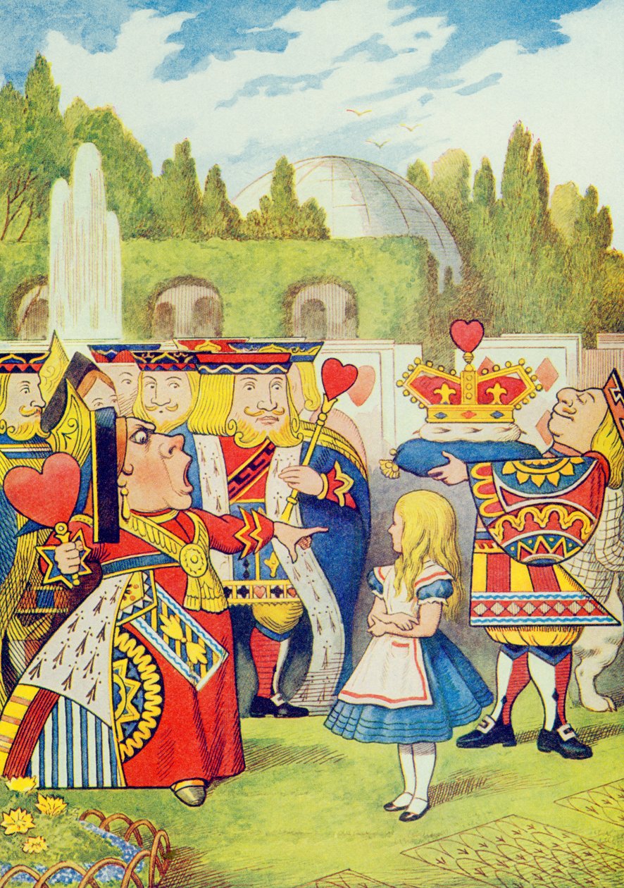 queen of hearts · king · crown · young girl · garden · knave · courtiers · female · anger · cross · Private Collection / Bridgeman Images |