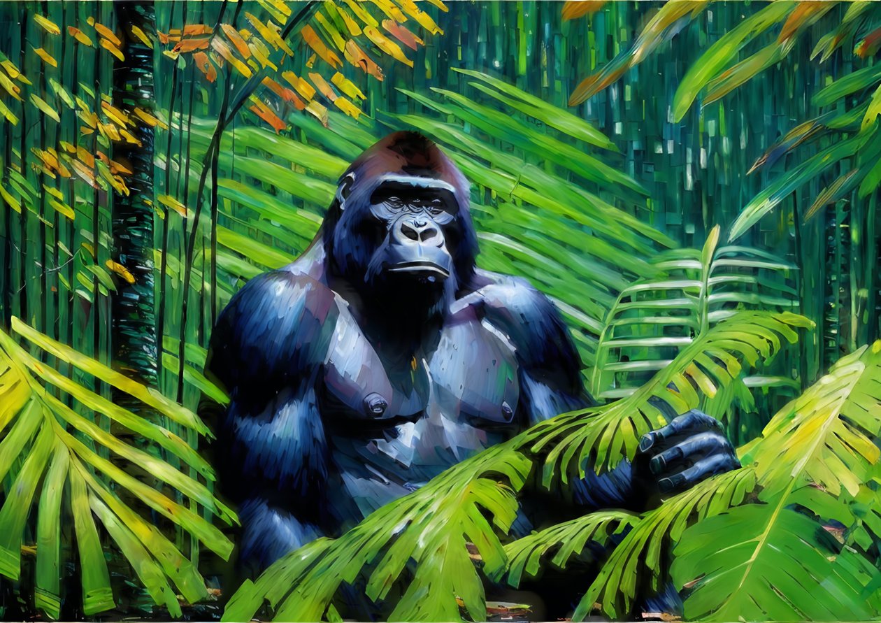 This image was created with the assistance of generative AI. 2023 · Digital acrylic painting · Picture ID: 1459331 animals · imaginative · colorful modern · decorative · gorilla · gorilla · animals · imaginative · colorful · modern · decorative