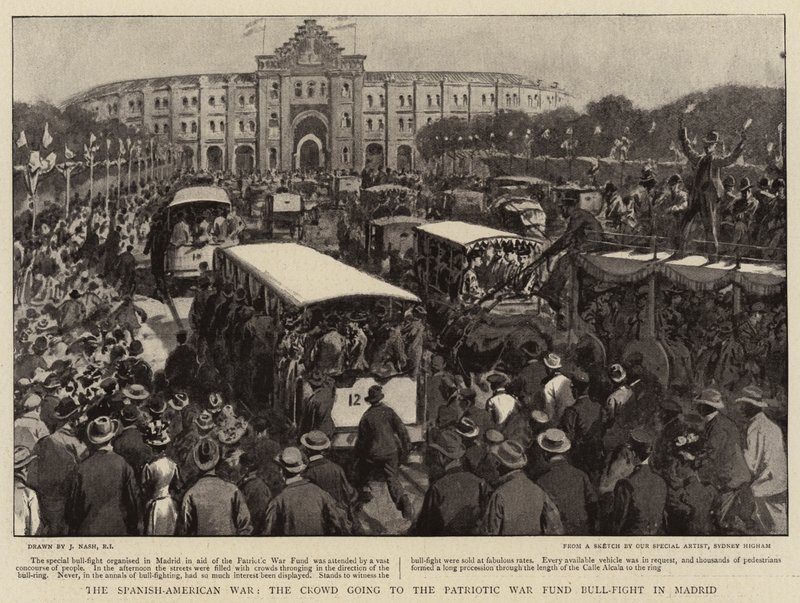 spanish american war · crowd · going · patriotic war fund · bull fight · madrid · crowds · spain · Private Collection / Bridgeman Images · / Look and Learn |