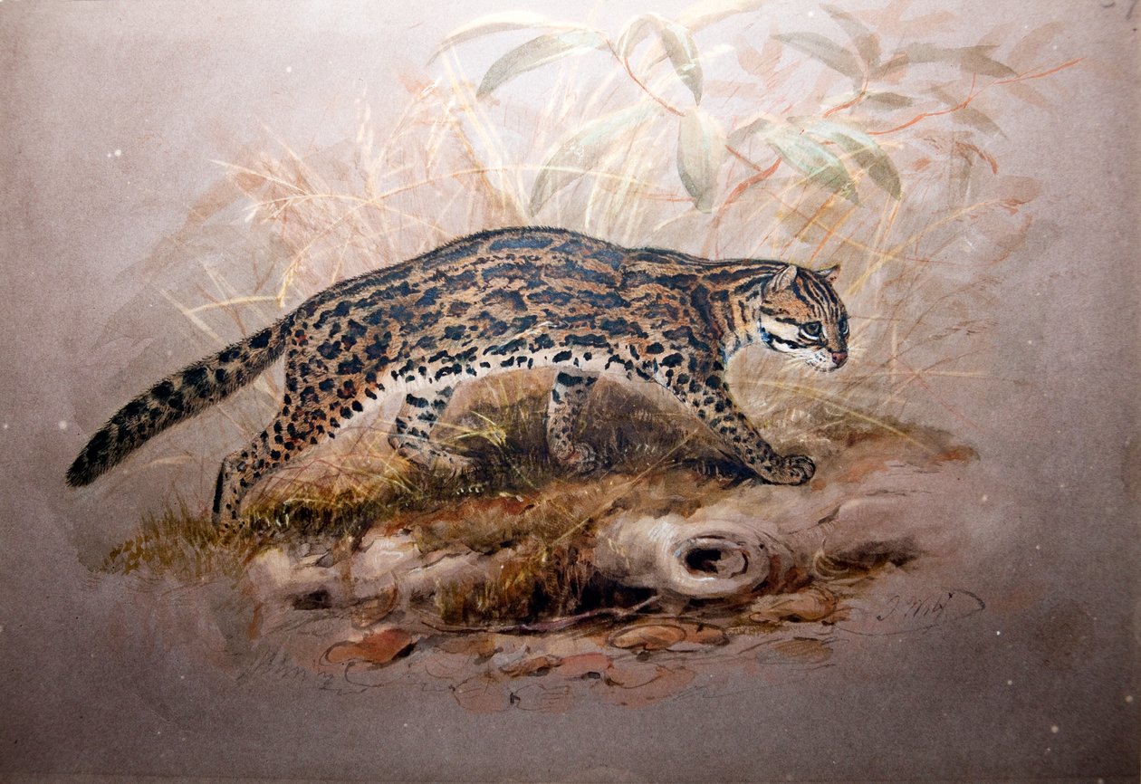artwork · painting · full length · mammals · carnivores · felidae · felis · pardalis · ocelot · animals · animal · wild animal · wild animals · nature · wildlife · wild cat · wildcat · feline · foliage · Zoological Society of London / Bridgeman Images |