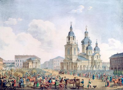 The Hay Market Place and The Assumption Church in St Petersburg(La place du marche au foin et l'eglise de l'Assomption a Saint Petersbourg (The Hay Market Place and The Assumption Church in St Petersbourg). Oeuvre de Karl Petrovich Beggrov (1799-1875), aquarelle sur papier)Karl Pavlovich Beggrov |