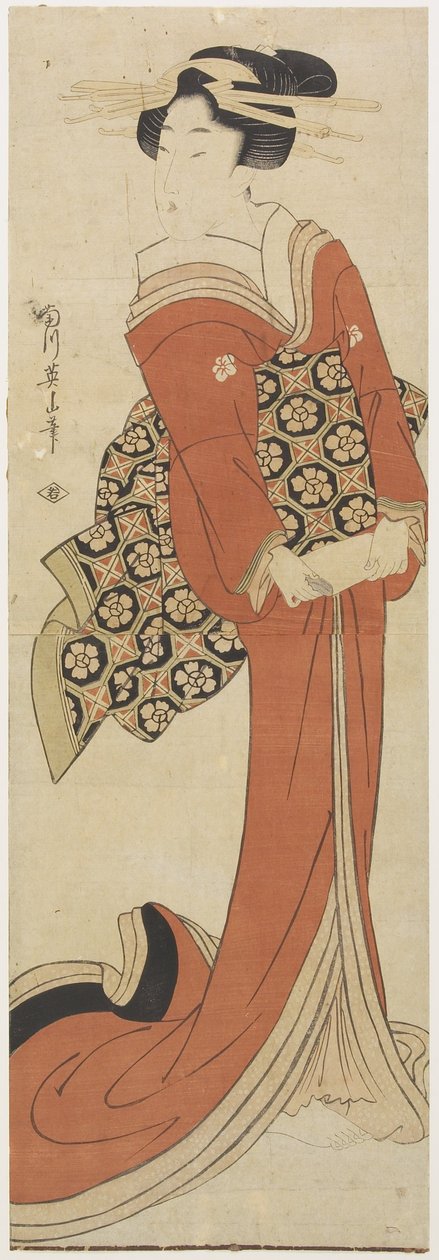 Woman Holding a Roll of Paper((Woman Holding a Roll of Paper))Kikukawa Eizan |