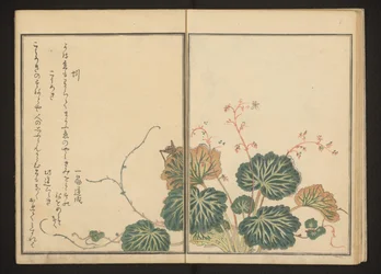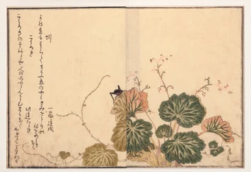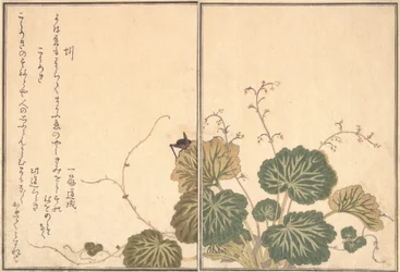 Grasshopper and Centipede on Aconite Plant Horsefly on Bindweed and Caterpillar on Taro Plant Grasshopper on Bean and Praying Mantis on Melon Wasps and Hairy Caterpillar on Arrowroot Basketworm and Helmetbeetle on Bush Clover and Stone-Leek Flower Cone-headed Grasshopper or Locust, Praying Mantis Red Dragonfly and Locust by Pinks Cricket and Fireflies on Polygonum and Reeds Dragonfly with plants, 1746, 1924 Grasshopper and praying mantis, 1788 Wasps and hairy caterpillar, 1788 Katydid and Cicada on Gourd Album of miscellaneous paintings Fruit Spray with Dragonfly Paper Wasp Hachi, Hairy Caterpillar Kemushi..., 1788 Chrysanthemums Snail and Noisy Cricket on Eggplant Flowering Gourd Vine, Rinpa School, Signature and Seal of Sakai Hoitsu Tree Cricket Matsumushi, Firefly Hotaru Mole Cricket and Earwig on Bamboo Shoot Big Tree and Birds Tree Cricket and Firefly Worm on Green Leaved Plant Violets Basket worm and helmet beetle, 1788 Frogs and Gold Bug Near Lotus Frog Kaeru, Gold Beetle Kogane mushi