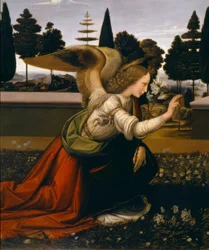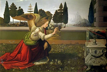 Angel Gabriel, from the Annunciation, 1472-75 (detail) (post-restoration)(Angel Gabriel, from the Annunciation, 1472-75 (detail) (post-restoration))Leonardo da Vinci |