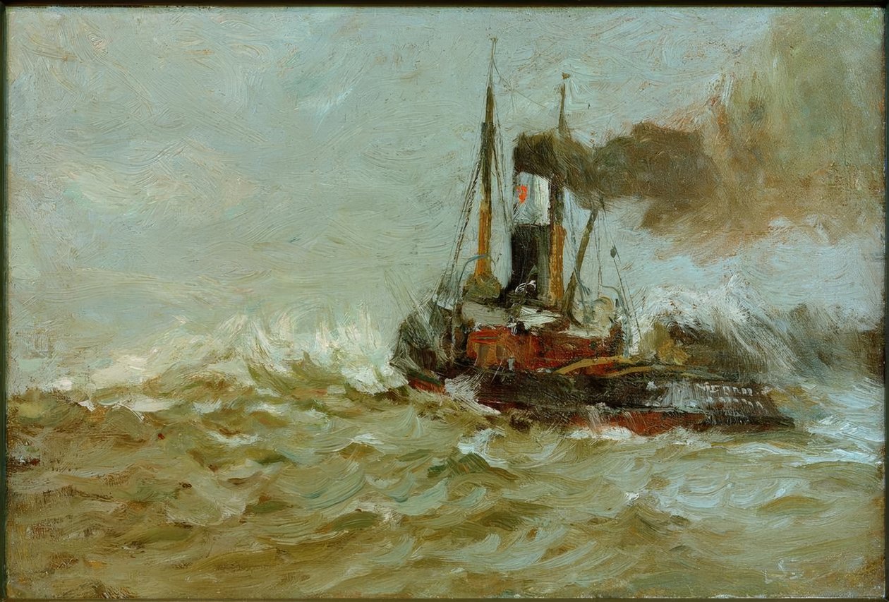 german · smoking · ship · marine · ship types · tractor · chimney · technology · painting · painting · ocean-going tugs · Eagle · Hamburg · / akg-images |