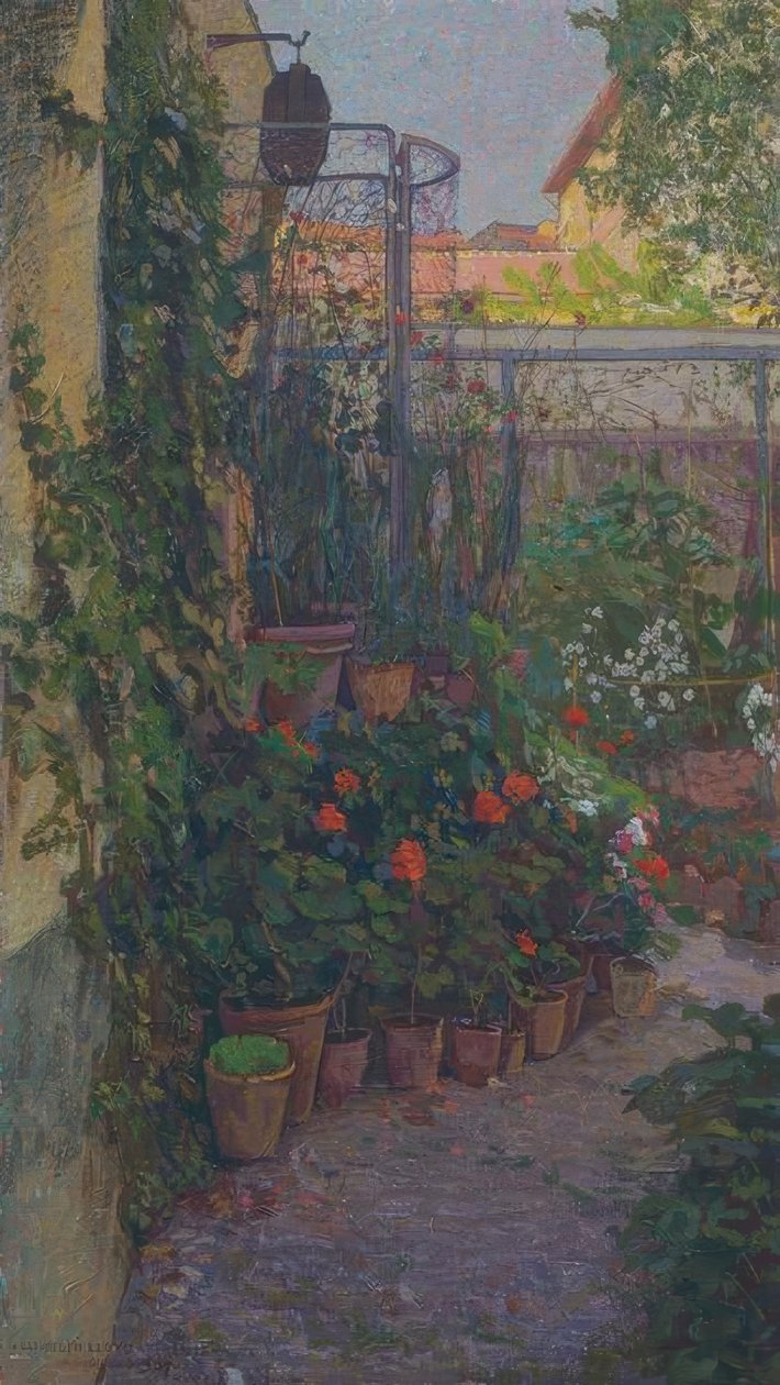 flower · garden · house · home garden · path · plant · container plants · triptych · geography · italy · technology · oil · on · canvas · / akg-images
