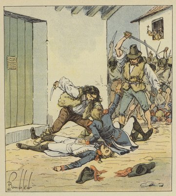 Massacre of French soldiers in Verona(Illustration by Bombled Louis (1862-1927) from the book “The Memorial of Saint Helene” by Count Emmanuel de Las Cases (1766-1842): Massacre of French soldiers in Verona, Private Collection)Louis Charles Bombled |