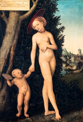 16th century · antiquity · colour · cupid · mythological figure · mythology · honey · food · nudity · painting · renaissance · venus · cityscape · cranach lucas the elder (1472-1553) · painter · artist · outside · mzpainting · · Musée Fondation Bemberg, Toulouse, France / Bridgeman Images