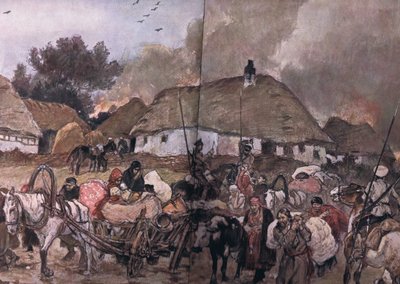 On the Way to Brest-Litowsk: Polish Refugees with Cossacks Following at the Rear, from The Illustrated History of the World War 1914-1915(On the way to Brest-Litowsk: Polish regugees with Cossacks following at the rear, from The Illustrated History of the World War 1914-1915 pub. by Union Berlagsefellfchaft, 1922 Vol. 3)Max Tilke |