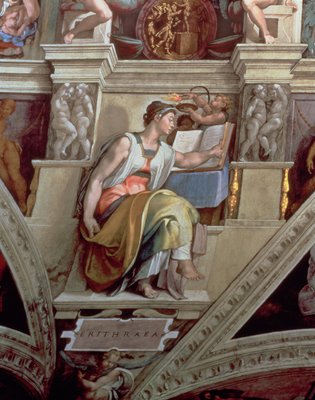 Prophets and Sibyls: Erythraean Sibyl (Sistine Chapel Ceiling)(Prophets and Sibyls: Erythraean Sibyl Sistine Chapel ceiling in the Vatican, 1508-1512. )Michelangelo Buonarroti |