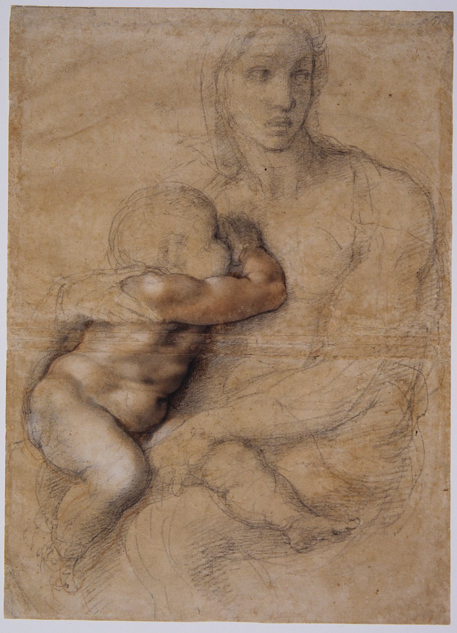 italy · virgin · mother · florence · motherhood · renaissance · mary · virgin mary · bible · maternity · idyll · graphic arts · new testament · madonna · christ child · madonna and child · virgin and child · holy family · sanguine · florentine school · buonarroti · mother of god · bible · buonarroti · michelangelo 1475-1564 · casa buonarroti · michelangelo 1475-1564 · black chalk and white colour on paper · Fine Art Images/Heritage Images
