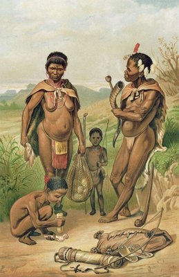 (A Bosjesman Family, frontispiece from 'The History of Mankind', Vol.1, by Prof. Friedrich Ratzel, 1896 )