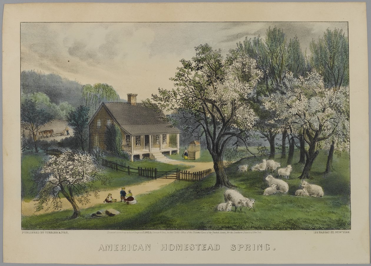 American Homestead Spring(American Homestead Spring, 1868-69 (hand-coloured litho))N. and Ives, J.M. Currier |