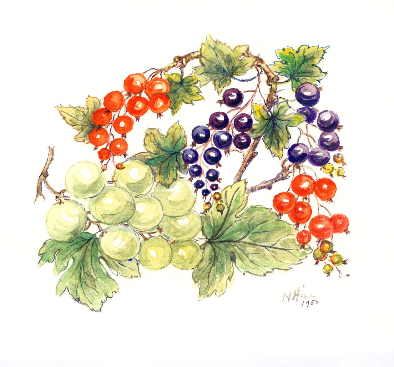 Black and Red Currants with Green Grapes(Black and Red Currants with Green Grapes, 1986 (wc on paper))Nell Hill |