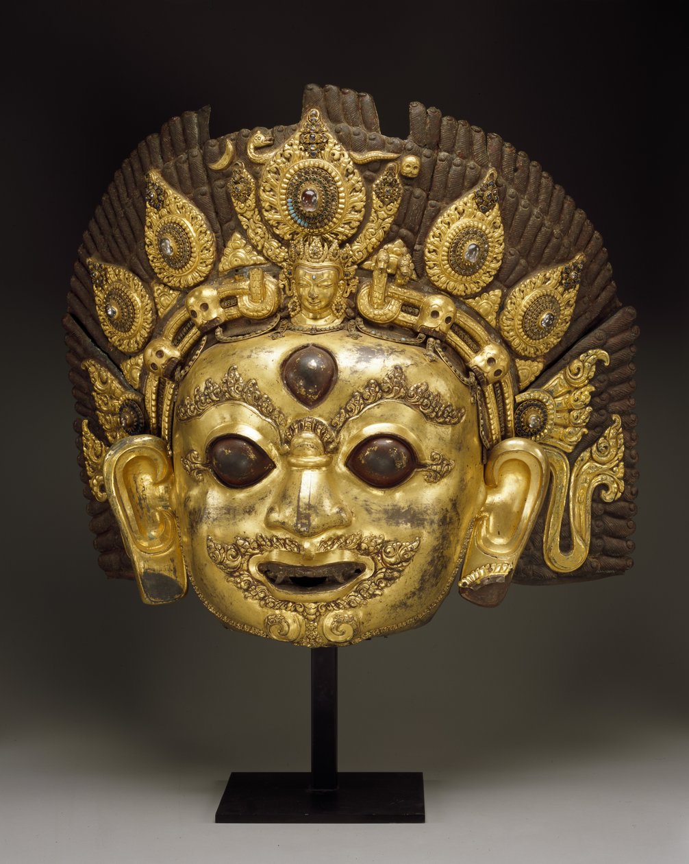 Mask of Bhairava(Mask of Bhairava (gilt copper repoussé & gemstones))Nepalese School |