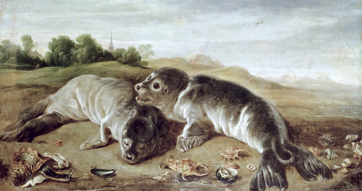Two Young Seals on the Shore(Two Young Seals on the Shore, c.1650 )Paul De Vos |