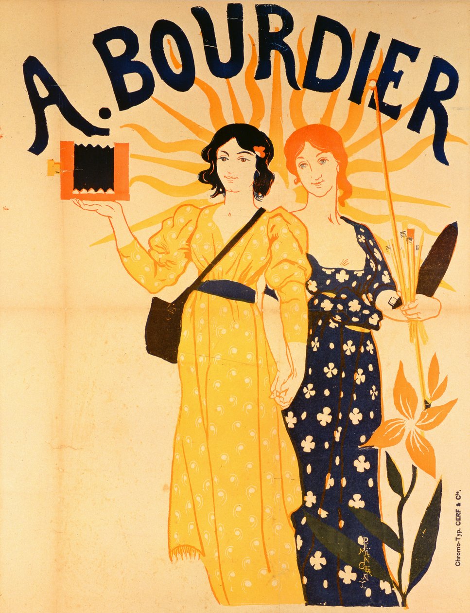 Advertisement for Bourdier cameras by Paul-Emile Mangeant. Available as an art print on canvas, photo paper, watercolor board, uncoated paper or Japanese paper.