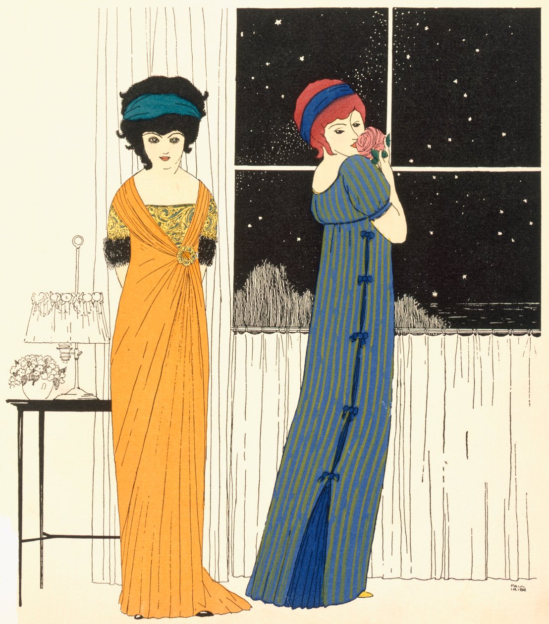 Two empire line evening dresses, from 'Les Robes de Paul Poiret' 1908(Two empire line evening dresses, from 'Les Robes de Paul Poiret' 1908 (pochoir print))Paul Iribe |