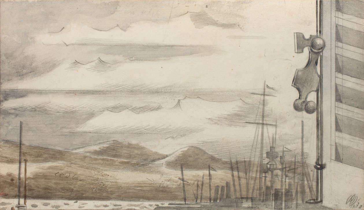 20th century · 1930s · colour · drawing · mediterranean sea · ship · cloud · weather · port · toulon · mzdrawing · nash paul (1889-1946) · united kingdom · europe · painter · artist · · / Bridgeman Images |