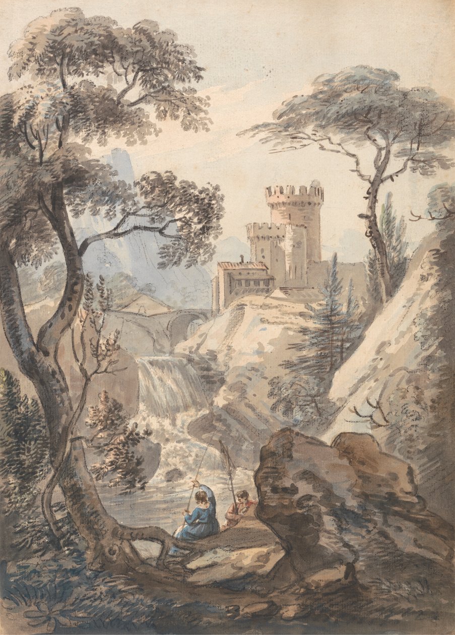 Italianate Landscape with Castle, Cascade and AnglersPaul Sandby |