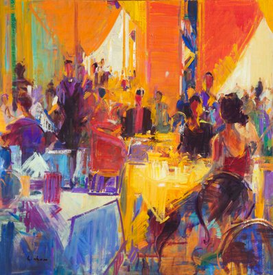 contemporary art · colour · multicoloured · painting · several people · restaurant · waiter · table · furniture · oil painting · mzpainting · interior · contemporary artist · · / Bridgeman Images