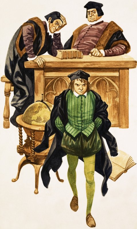 galileo · weights · leaning tower of pisa · pisa · tower · experiment · discovery · lamp · tutors · teachers · Private Collection / Bridgeman Images · / Look and Learn |