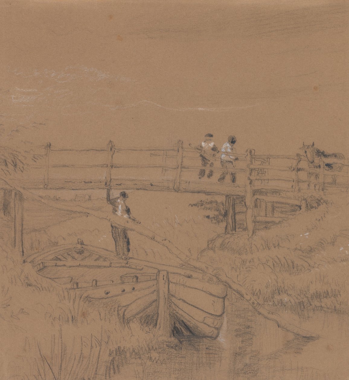 sketch · peaceful · pencil · countryside · bridge · stream · creek · people · scenic · pastoral · bridge · over · stream · figures |