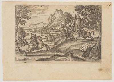 Landscape with Two Riders(Landschap met twee ruiters.)Pieter van der Borcht (I)(print maker),Hans Bol (rejected attribution)(print maker) |