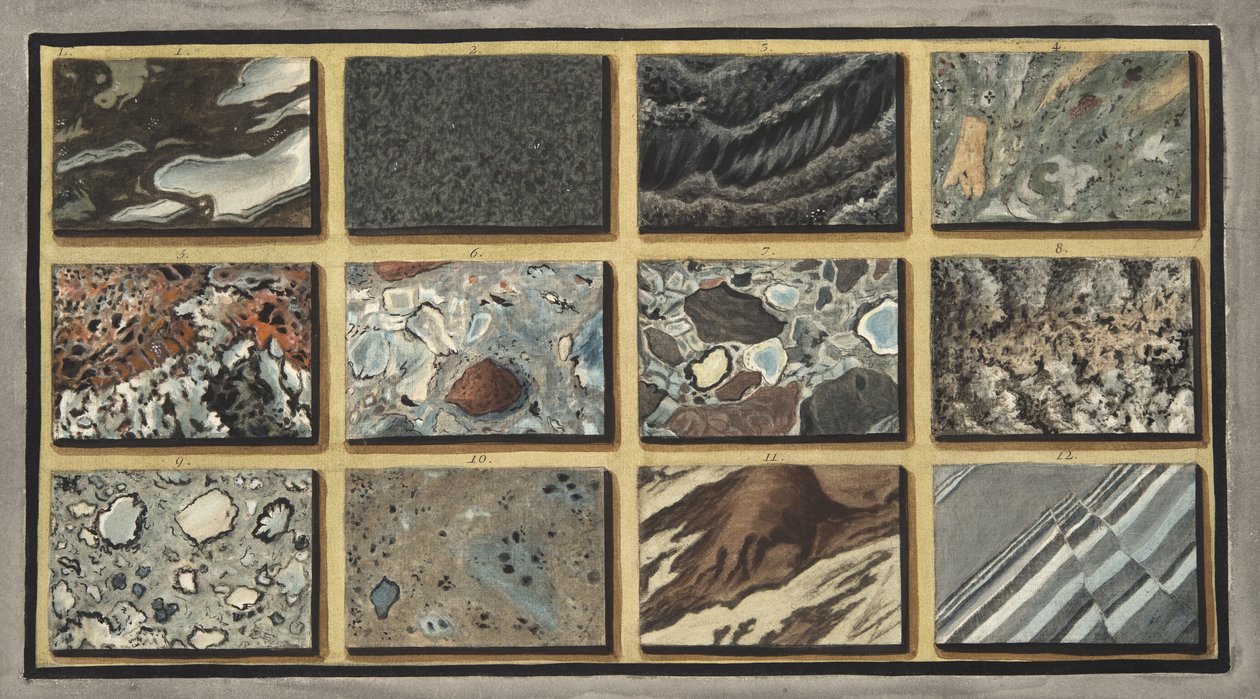 Marble and other mixed stones of Vesuvius polished, Plate L, from 'Campi Phlegraei: Observations on the Volcanoes of the Two Sicilies', by Sir William Hamilton, published 1776(Marble and other mixed stones of Vesuvius polished, Plate L, from 'Campi Phlegraei: Observations on the Volcanoes of the Two Sicilies', by Sir William Hamilton (1730-1803), published 1776 (hand colour)Pietro Fabris |