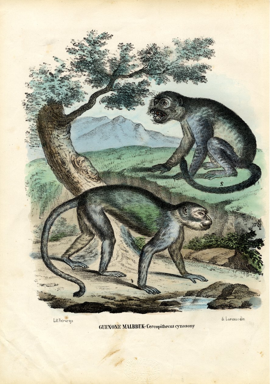 green or malbrouck monkey · monkeys · illustration · animals · mammals · monkeys · Private Collection / Bridgeman Images |