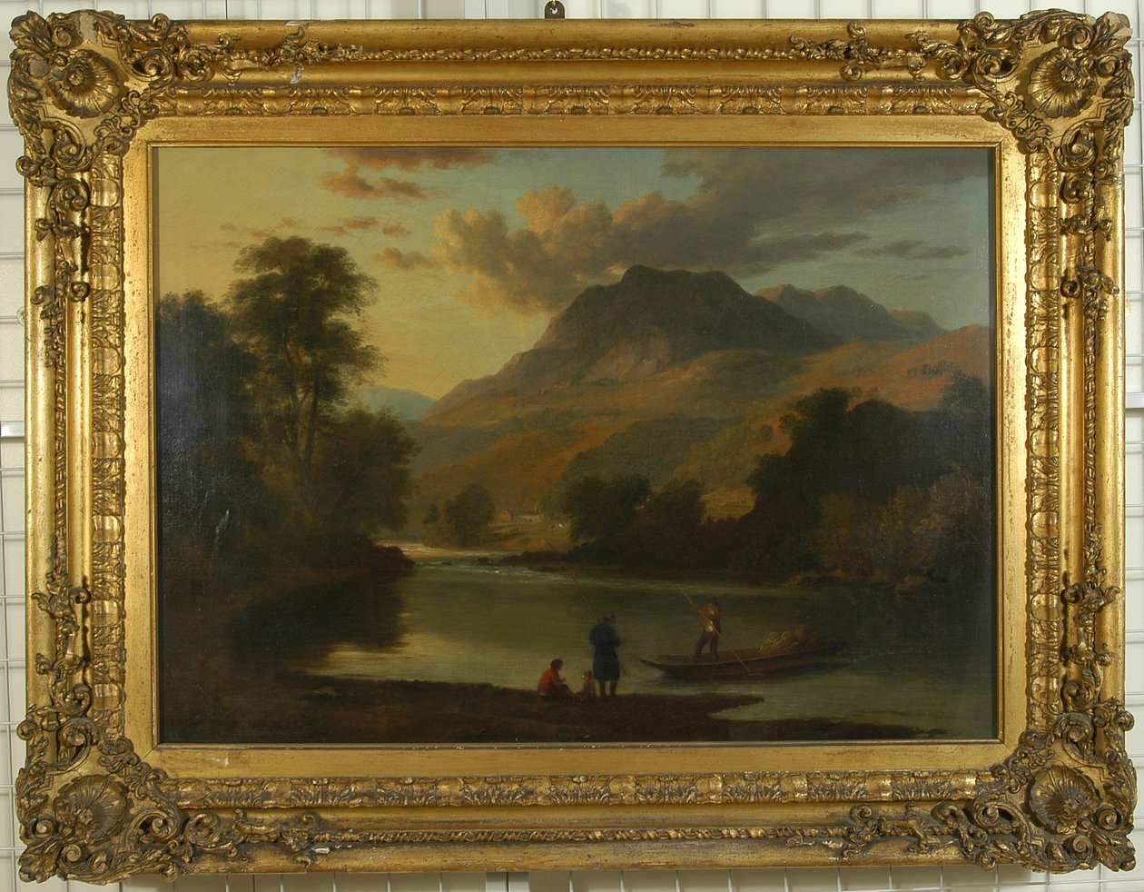 loughrigg · river brathay · lake district · cumbria · cumbrian · fell · fells · landscape · boat · figures · painting · england · english · countryside · hilly · mountainous · georgian · Wordsworth Trust / Bridgeman Images |