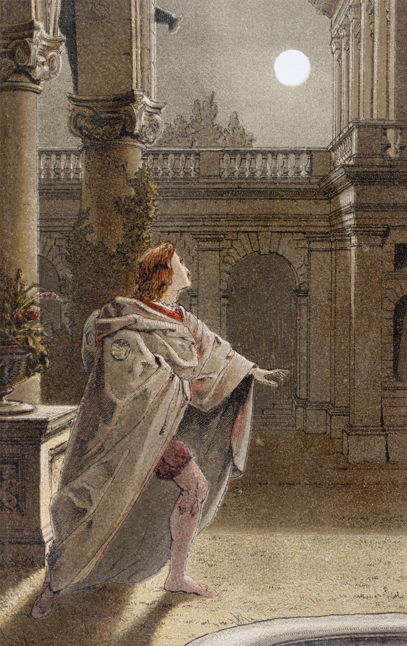 shakespeare william (1564-1616) · england · united kingdom · europe · playwright · theatre · romeo and juliet · fictional character · balustrade (architecture) · figure · love · pillars · columns · cloister · lovers · illustrated library · play · classical · architecture · romantic · illustrations · scene · dramatic · male · speech · dawn · romance · drama · illustration · romeo · shakespearean · juliet · Private Collection / Bridgeman Images |