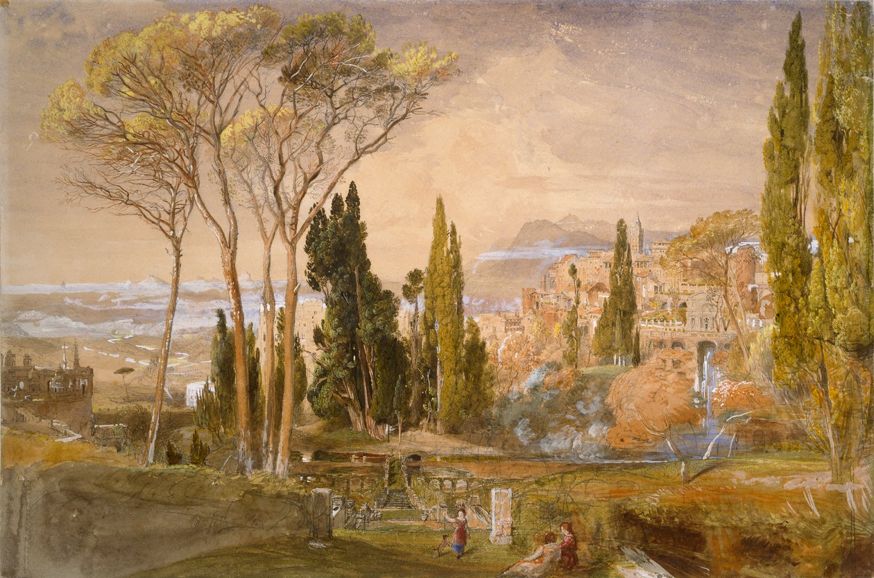 nature · exterior · outdoors · scenic · tree · italy · italian · building · buildings · female · people · girl · girls · house · plant · country · lazio · romantic · view · british · color · colour · cityscape · villa · location · century · tivoli · vista · britain · concept · outside · roma · romanticism · 19th century · background people · elevated view · nineteenth century · tibur · villa d'este · watercolour · landscape · arial view · romantic era · samuel palmer · palmer · samuel · bodycolour · ashmolean museum · Ashmolean Museum, University of Oxford/Heritage Images