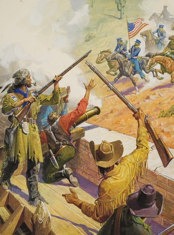weapon · cavalry · north america · america (continent) · native american indian · territory · sante fe trail · military · indians · canon · weapon · weapons · north america · muskets · horses · musket · america · amicable · arkansas · commanche · Painting · Mzpainting · Private Collection / Bridgeman Images · / Look and Learn |